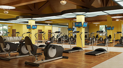 有氧运动区位于会所二层,总面积约200平米,内设20余部韩国进口健身设备,包括跑步、椭圆仪、台阶机、自行车等,通过富含韵律感的有氧运动消耗身体中积聚的热量,达到瘦身、缓解疲劳、舒缓压力的功效。