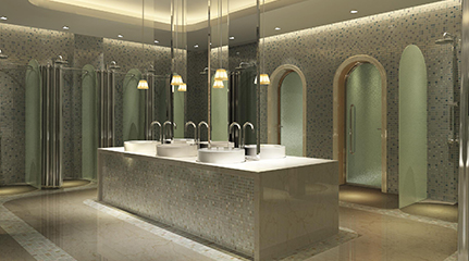 池区位于会所一层,总面积达166平米的,分为更衣、淋浴及干湿蒸房等几大部分。均配备先进、安全的各类洗浴设备,让每一位会员朋友在健身前后都能享受到更多的休息与放松。